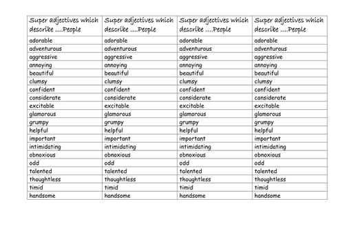 Super Teacher Adjectives. Sentences With Adjectives And Adverbs Super Teacher. If I had to make a list of adjectives about them this is what it would look like.