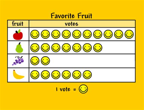 Pictographs use symbols or pictures to represent data.. Improve your math knowledge with free questions in "Create pictographs" and thousands of other math skills. Make a small table to record this information.