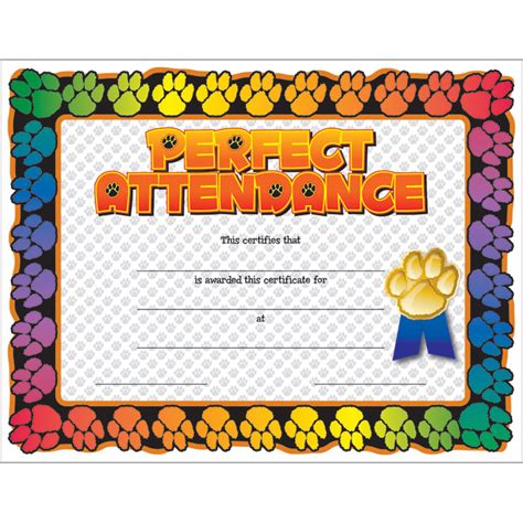 Paw Perfect Attendance Certificate - Jones School Supply