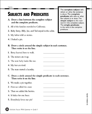 Subject And Predicate Grade 3. Learn vocabulary, terms and more with flashcards, games and other study tools. Printables for Third Grade English Language Arts.